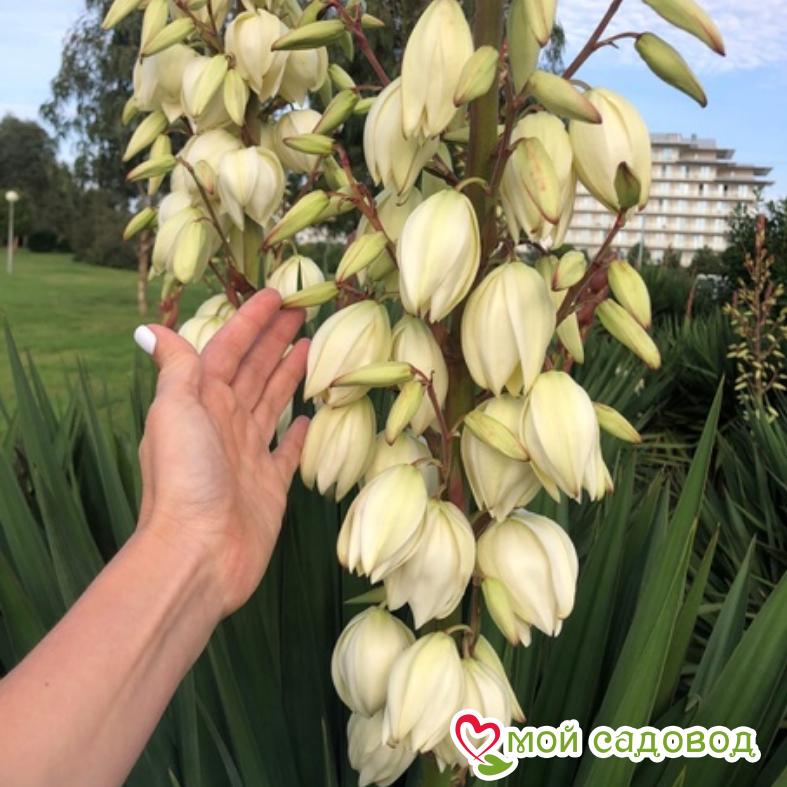 Юкка Свеча Господня – экзотический вечнозеленый многолетник, который спешно приживается даже в холодных регионах (Сахалин, Сибирь, Камчатка и т.д.). Растение отлично сочетается с другими «обитателями» сада. Купить недорого качественный посадочный материал можно в нашем интернет-магазине. Как выглядит растение? Данный сорт выглядит очень привлекательно в любое время года. Цветонос достигает в высоту 1 – 2 м. У более взрослых экземпляров его длина составляет около 3 м. Листья длинные, узкие, с острой макушкой. Окрас – темно-зеленый. Цветки колокольчатой формы, с белыми лепестками. Бутончики с примесью малинового оттенка. От цветущей юкки исходит приятный сладковатый аромат. Применение в ландшафтном дизайне Юкка Свеча Господня прекрасно смотрится в сольной посадке. Ее декоративные листья и цветки создают интересный акцент в саду. Также многолетник эффективно выглядит в групповой посадке, живых изгородях и бордюрах. Особенно хорошо он сочетается с каменными элементами и морской галькой. Советы по посадке и выращиванию Многолетник предпочитает как солнечные, так и полутенистые места. Почва должна быть хорошо дренированной и плодородной. Если она тяжелая или глинистая, добавьте песок или перлит. Не лишними будут органические удобрения, такие как компост или перегной. Далее действуйте по такому алгоритму: Раскопайте яму глубиной и диаметром в 2 раза больше размера корневой системы юкки. Добавьте внутрь органическое удобрение или компост. Аккуратно извлеките юкку из контейнера и освободите корни от земли. Осмотрите корневище на наличие повреждений или гнили. Если обнаружите подозрительные участки, удалите их острым садовым ножом. Установите юкку по центру лунки. Засыпьте корни грунтом и уплотните вокруг саженца. После посадки хорошо полейте растение теплой, отстоянной водой. В дальнейшем также поддерживайте умеренную влажность грунта в прикорневой зоне. Удаляйте сорняки и мульчируйте приствольные круги скошенной травой или соломой. Положительные качества юкки нитчатой Юкка Свеча Господня ценится садоводами за такие качества: высокая холодостойкость; крепкий иммунитет; нетребовательность к условиям выращивания; длительное и обильное цветение; универсальность в применении. Купить недорого саженцы юкки можно в интернет-магазине «Мой садовод». Просто отправьте понравившийся сорт в корзину, нажав на соответствующую кнопку. Мы бережно упакуем и максимально быстро доставим Вашу покупку ТК СДЭК или почтой России. Если возникнут вопросы или сложности с оформлением заказа, наши консультанты предоставят квалифицированную помощь. Мы гарантируем высокое качество посадочного материала и дорожим мнением каждого покупателя!